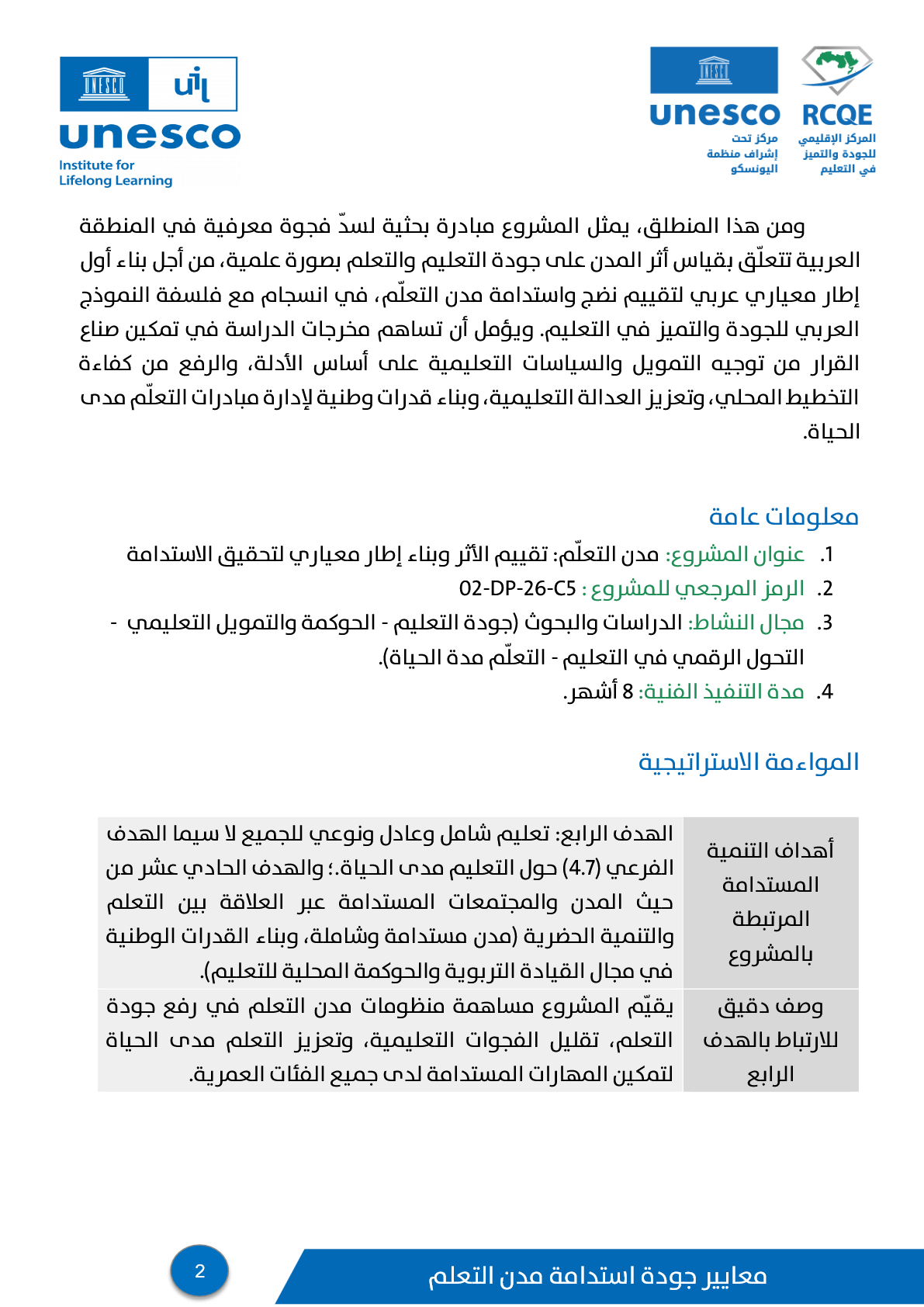 مشروع جودة استدامة مدن التعلم