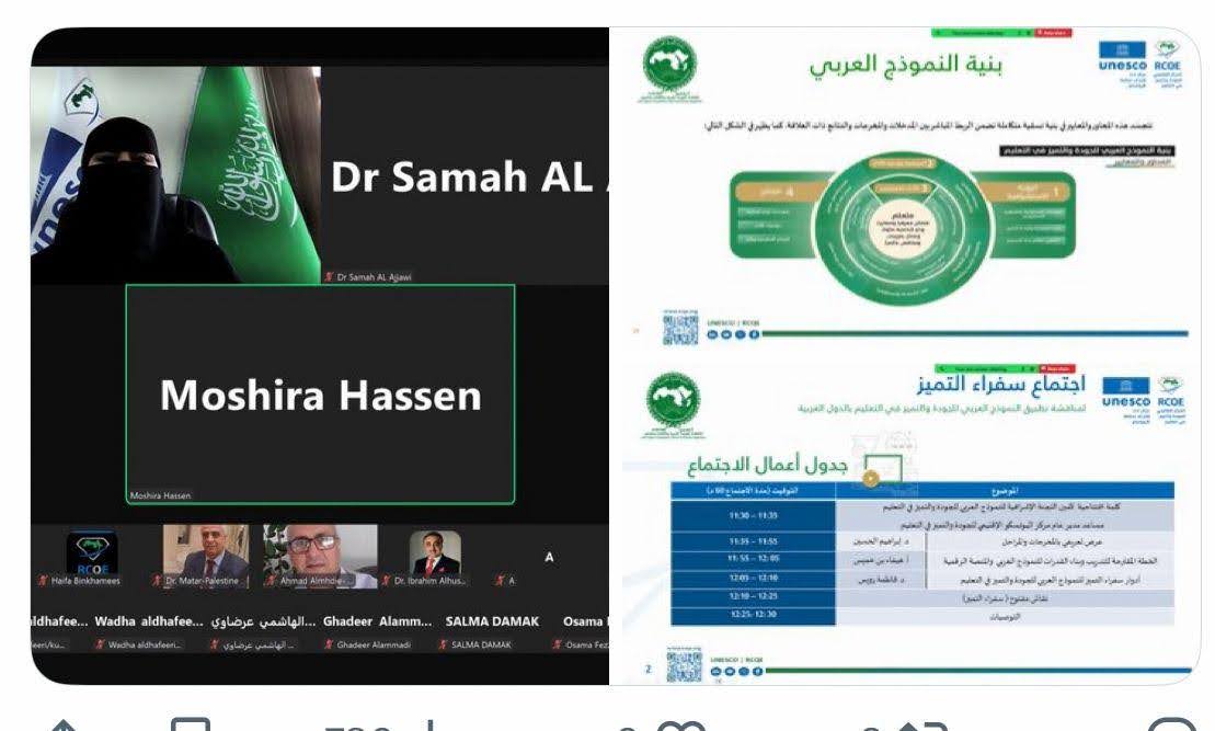 عُقد الاجتماع الثاني للعربي للتعريف بالنموذج العربي للجودة والتميز في التعليم في إطار الجهود الإقليمية ضمن برامج التأهيل لسفراء التميز والفرق التنفيذية ولجان التقييم والتحكيم وبحث الأدوار الداعمة لتطبيق النموذج في الدول العربية، وهي خطوة جديدة نحو تعليم عربي متكامل ومستدام.