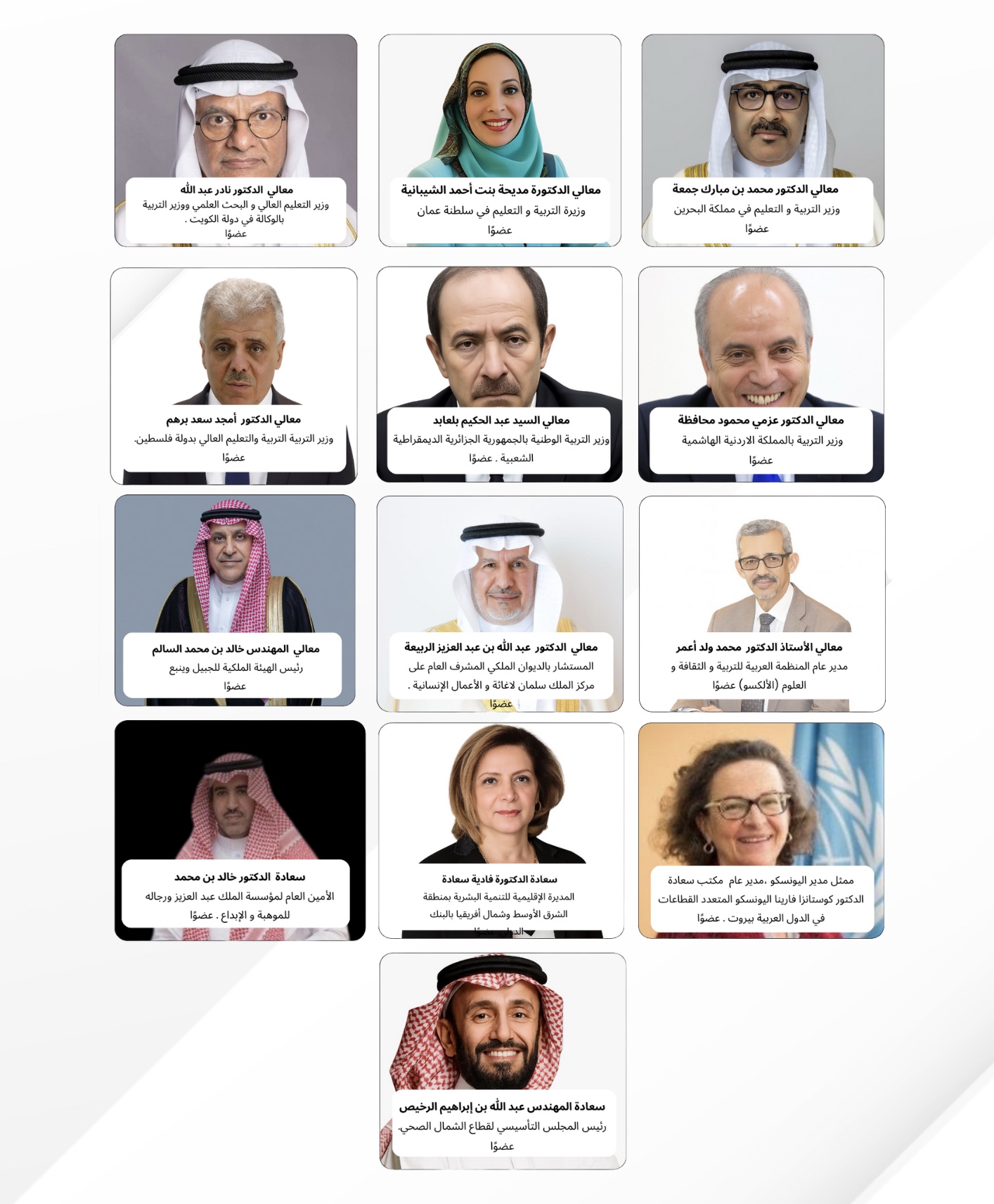 تشكيل مجلس إدارة المركز الإقليمي للجودة والتميز في التعليم في دورته الخامسة لمدة عامين برئاسة معالي وزير التعليم في المملكة العربية السعودية يوسف بن عبدالله البنيانو عضوية: